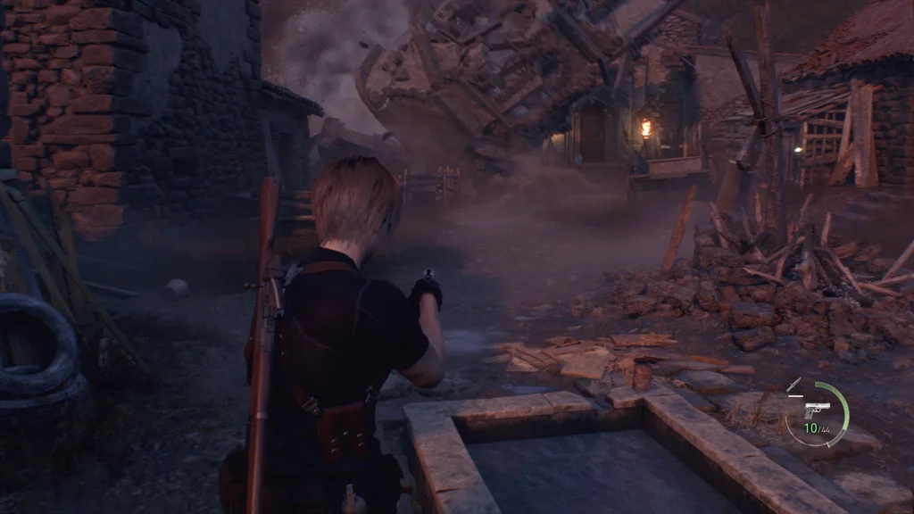 Знищивши групу заражених вовків, ви можете увійти до великого будинку, якщо забажаєте, але майте на увазі: житель села чекає на вас, а сходи обладнані таким чином, щоб вибухнути, якщо ви наблизитесь. Оскільки вам не потрібно повертатися цим шляхом, ви можете замість цього зосередитися на альтернативному маршруті до Ратуші.