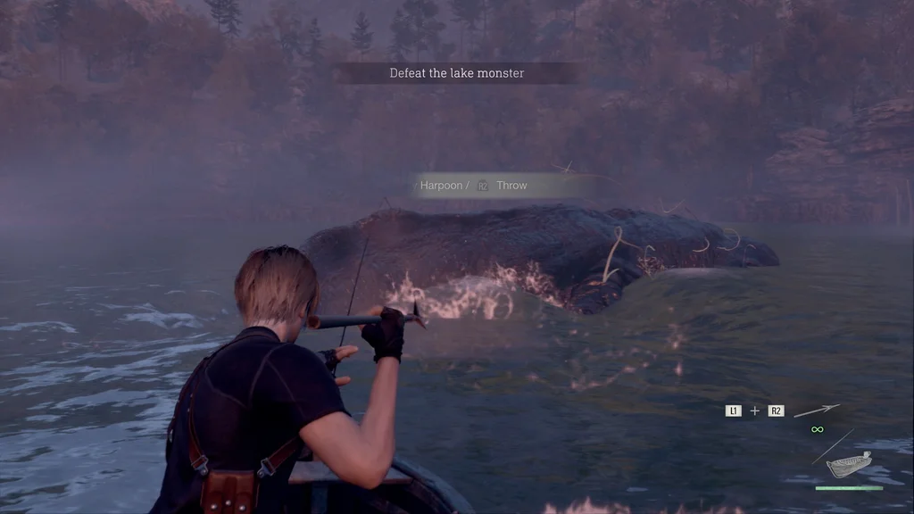 У вас є необмежена кількість гарпунів, якими вам потрібно буде швидко й обережно прицілитися, щоб кинути в монстра, коли він тягне ваш човен туди-сюди. Може знадобитися секунда, щоб дальність кидка повністю розширилася, тому пам’ятайте про відстань, а також про те, у який бік повертає Дель Лаго, щоб ви могли нахилитися під час кидка.