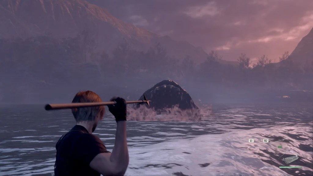 Леон зауважить, що звір має намір проковтнути його цілком, що спонукає монстра кинутися на вас лобом. Приготуйте свій гарпун і спробуйте прицілитися в його горловину, щойно він відкриється, оскільки одне пряме попадання призведе до того, що він зануриться під воду, і ваш човен залишиться в спокої.