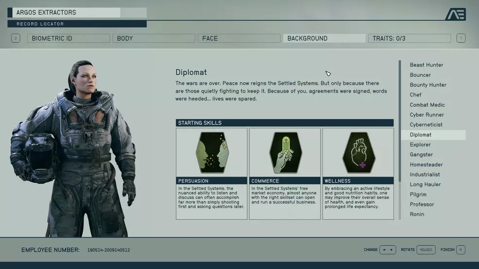 Виберіть правильний бекґраунд і початкові навички в Starfield.